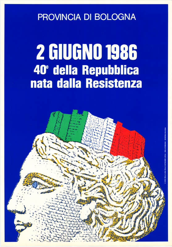 Il profilo dell’Italia turrita è raffigurato nel manifesto per la celebrazione della festa della Repubblica.