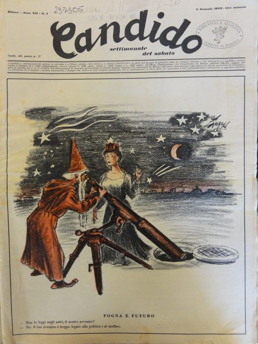 L’Italia turrita e stellata chiede illuminazioni sul suo futuro ad un mago-astrologo. Questo punta il cannocchiale non al cielo, per interpellare le stelle, ma verso un tombino della…