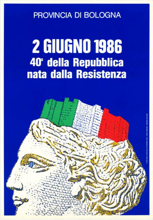 Manifesto di propaganda elettorale per le elezioni del 18 aprile 1948. L’Italia ha sembianze maschili, quelle di un cittadino italiano avvolto nel tricolore.