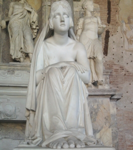 La scultura sembra essere il precedente del dipinto di Hayez (Meditazione); pur essendo un monumento funebre (la donna ritratta è Elena Mastiani Brunacci), si potrebbe suggerire per questa…