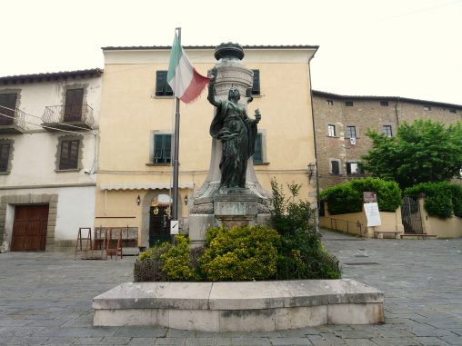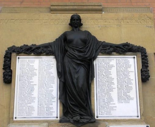 L’Italia turrita ha i capelli sciolti sulle spalle; impugna nella mano destra la spada e nella sinistra stringe una corona d’alloro. Il monumento è posto in ricordo dei…