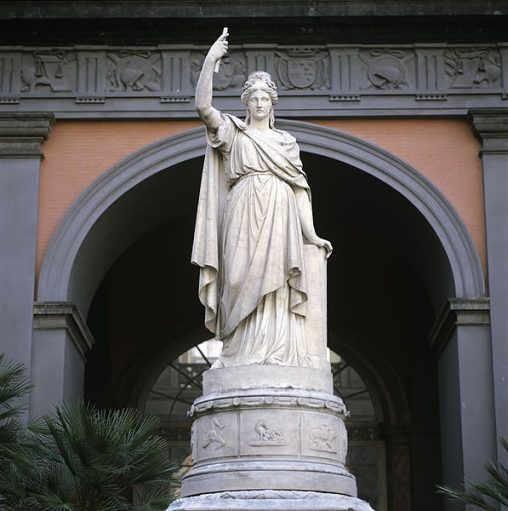 L’Italia è una donna alta, vigorosa, con i seni scoperti e le forme sinuose. Ha, inoltre, le braccia aperte, le quali si appoggiano su un lungo festone di…