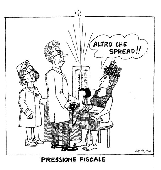 Mario Monti misura la pressione arteriosa all’Italia turrita e stellata. Questa è affetta da una pressione/spread particolarmente alta.