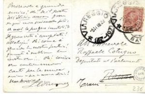 L’Italia turrita e stellata è di fronte alla bandiera italiana come se la volesse difendere.