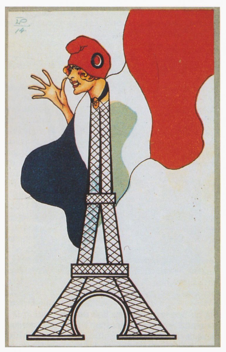 La Francia-Marianne ha il corpo della Torre Eiffel e fa scherzosamente “marameo”.