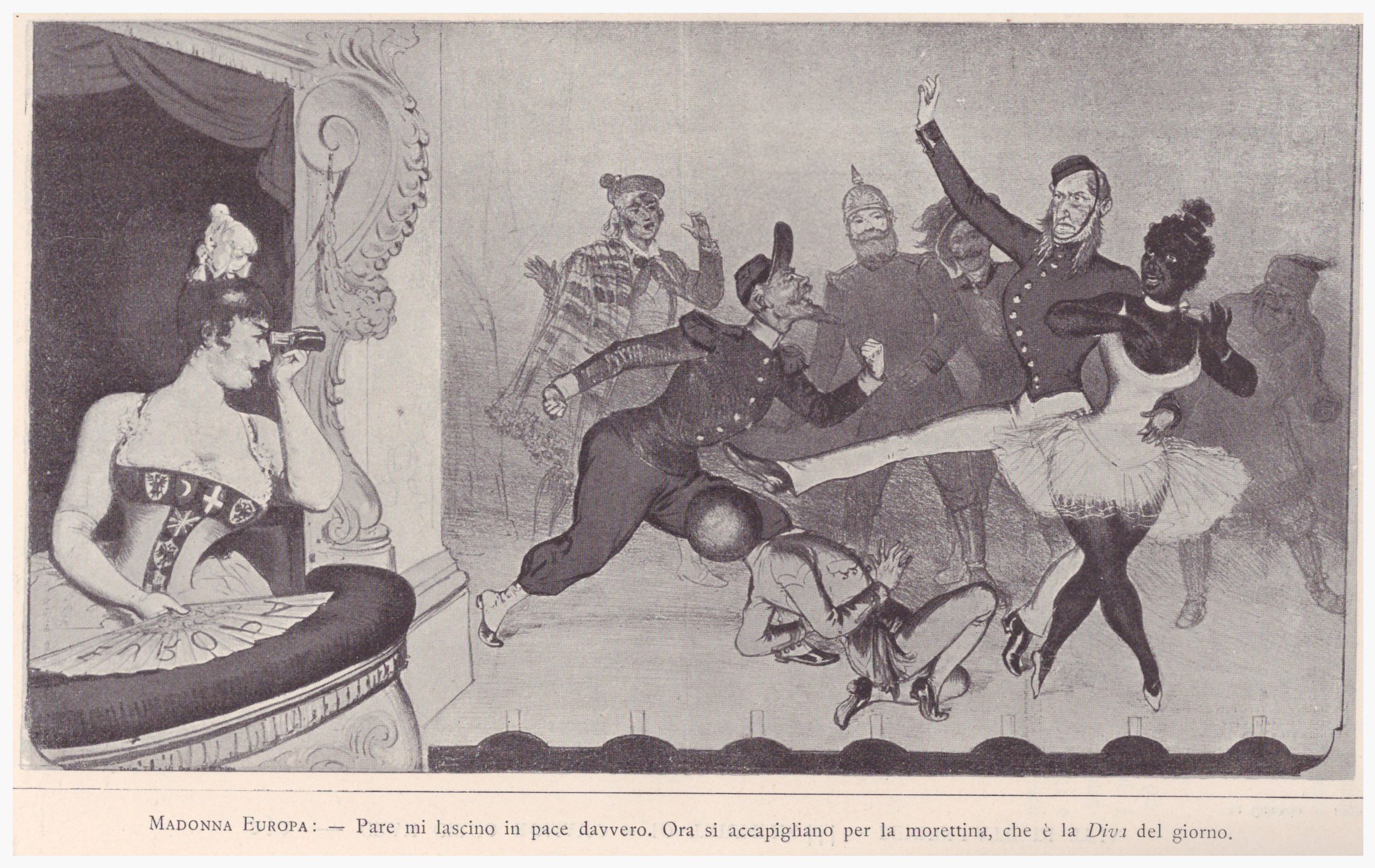 Casimiro Teja (Torino 1830 - ivi 1897): caricaturista italiano. Si iscrisse all’Accademia di Belle arti di Torino; debuttò su «Il Fischietto», imponendosi subito al pubblico. Continuò la sua attività di caricaturista con grande successo su «Il Pasquino», specchio della sua attività artistica. Collaborò anche a il «Trovatore», la «Scintilla », lo «Spirito Folletto» e l’«Uomo di Pietra», oltre a fondare il «Gianduja». Le tavole umoristiche di Teja seguono da vicino il Risorgimento italiano. Altre immagini dello stesso autore