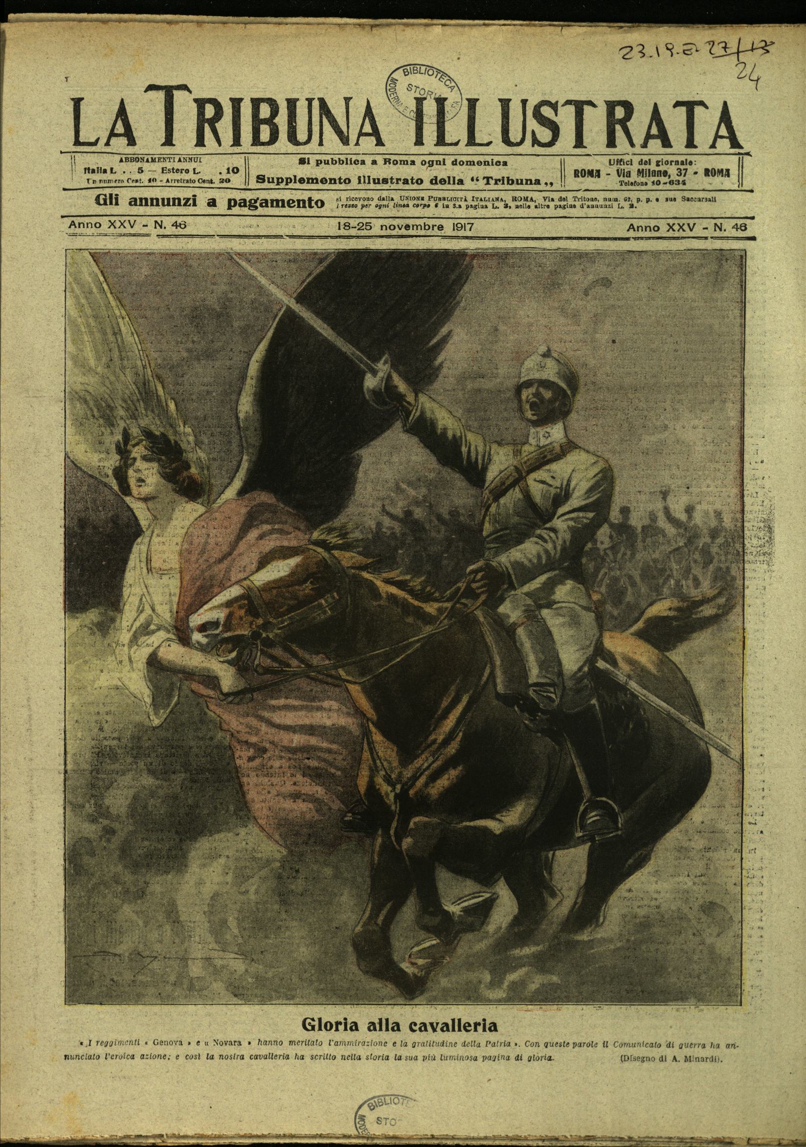 L’allegoria femminile della Vittoria corre a fianco della cavalleria italiana.
