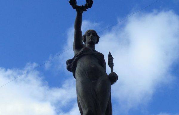 Sull’alto basamento sta l’allegoria dell’Italia che con la destra leva in alto una corona d’alloro e nella sinistra tiene una statuetta della Vittoria alata.