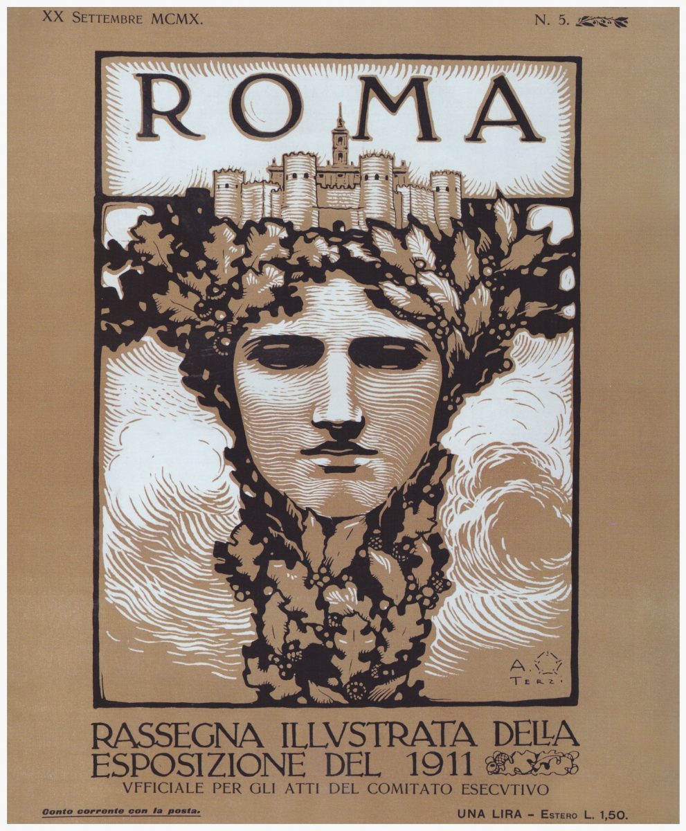 Italia e Roma si identificano nel volto turrito della copertina: la corona turrita racchiude infatti all’interno della cerchia muraria l’edificio svettate del Campidoglio. Un’immagine simile è in copertina della rivista «Italia!».