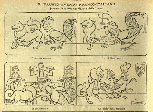 La vignetta si riferisce alla visita del Presidente francese Émile Loubet a Roma, per ricambiare il viaggio del re d’Italia a Parigi. Era la prima volta che un…