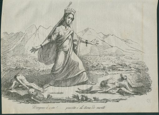 Delfico rappresenta cronologicamente problemi e questioni politiche che, secondo lui, il governo Ricasoli (giugno 1861 – marzo 1862) dovrà affrontare. Nei sei mesi è raffigurata l’Italia turrita che…