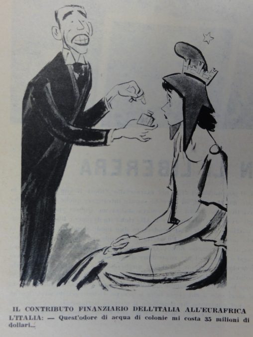 La vignetta si riferisce allo storico incontro tra Italia e Francia, avvenuto a Parigi. Italia e Francia sono rappresentate come due signore dell’epoca, la prima con corona turrita,…