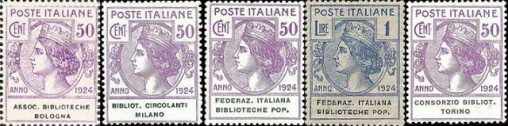 L’Italia turrita con in mano il fascio littorio è rappresentata in questa serie di francobolli che ha corso nel territorio della Repubblica Sociale Italiana.