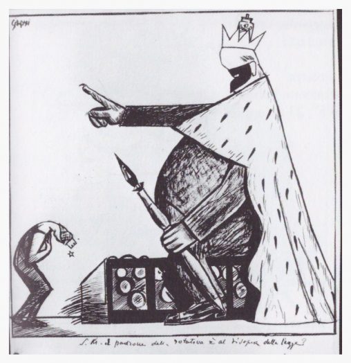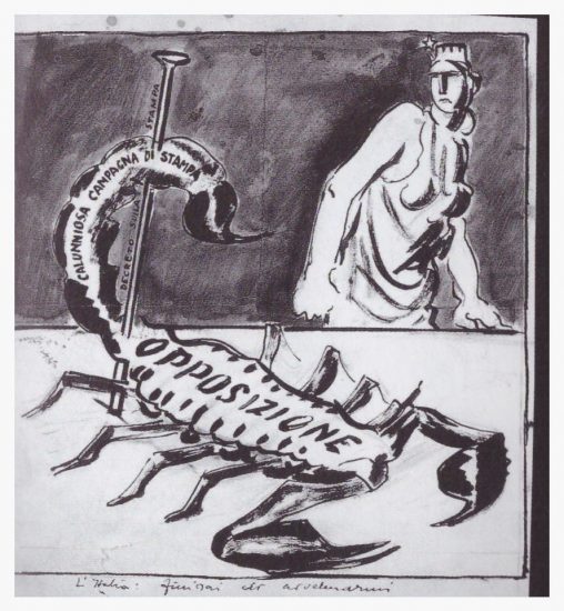 La figura femminile della Libertà e rinchiusa dentro un recinto di filo spinato dal «Corriere della Sera», «Il Mondo» e dal Partito Socialista Unitario.