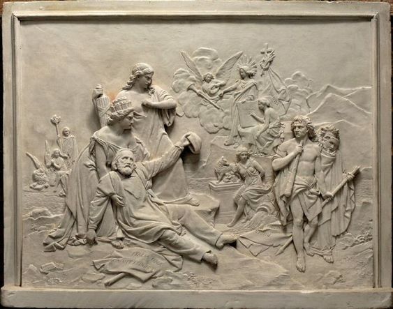 L’Italia turrita corrugata in volto sorregge Garibaldi ferito. Il tono del bassorilievo è polemico verso i Savoia, per aver fermato Garibaldi in Aspromonte. Il governo regio macchiatosi di…