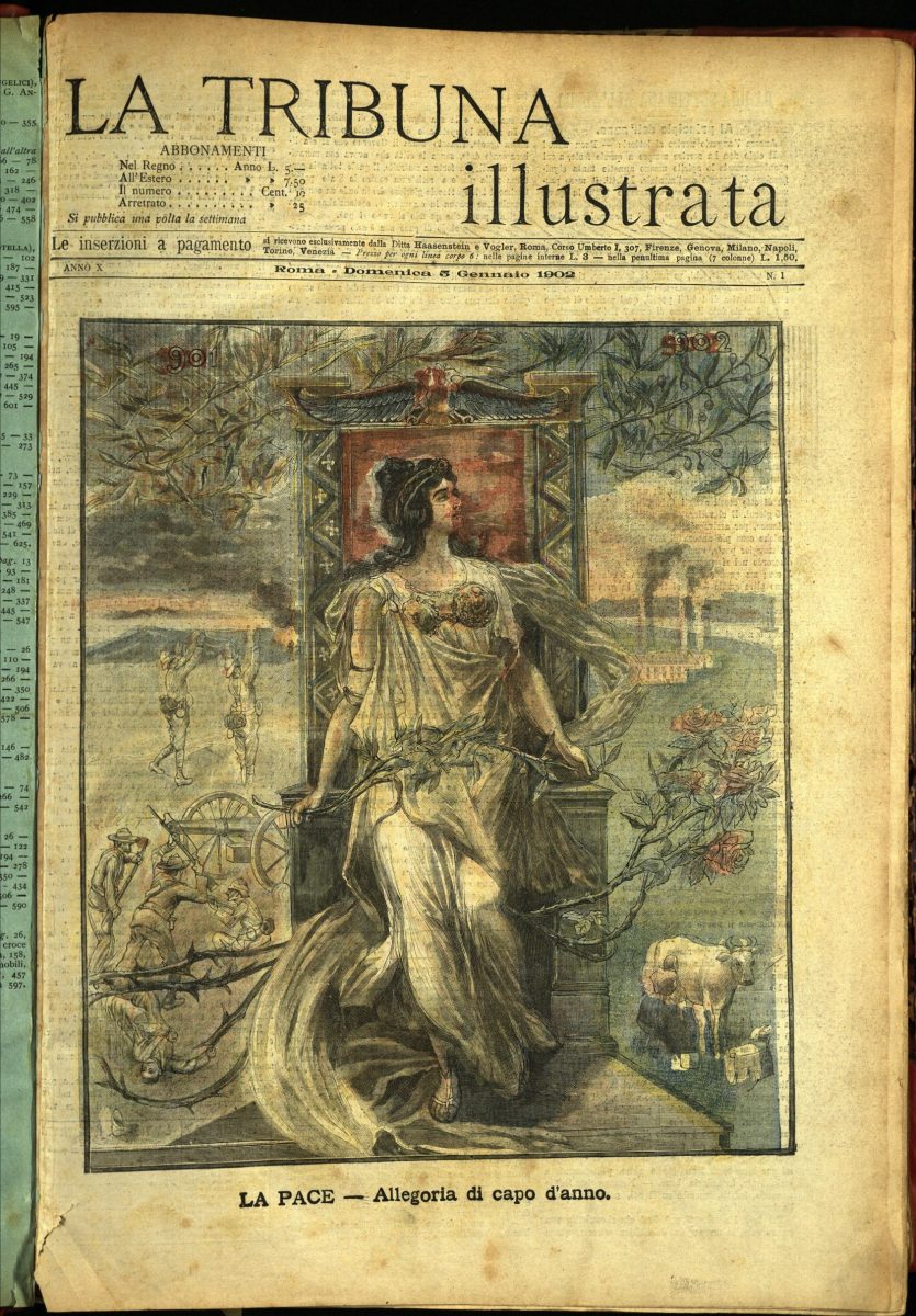 In primo piano la figura femminile della Pace, quale auspicio per l’anno nuovo.